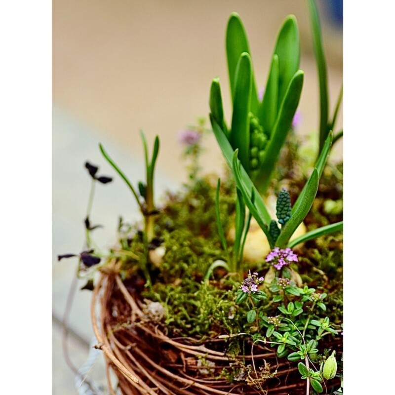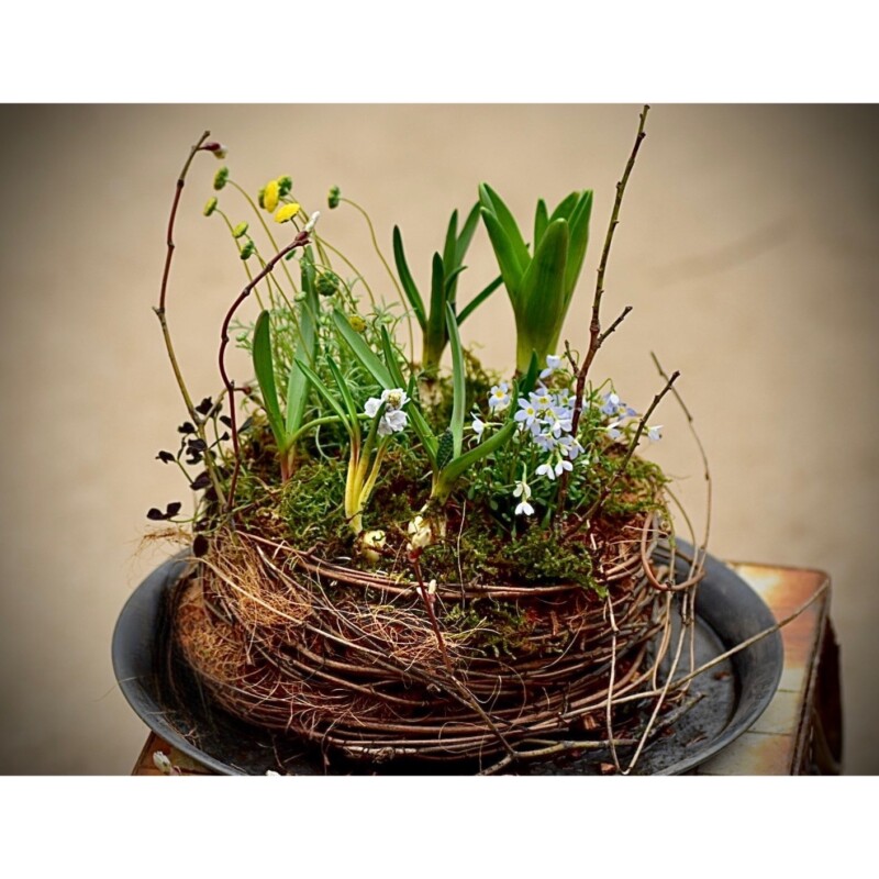 球根と苔の春の寄せ植え